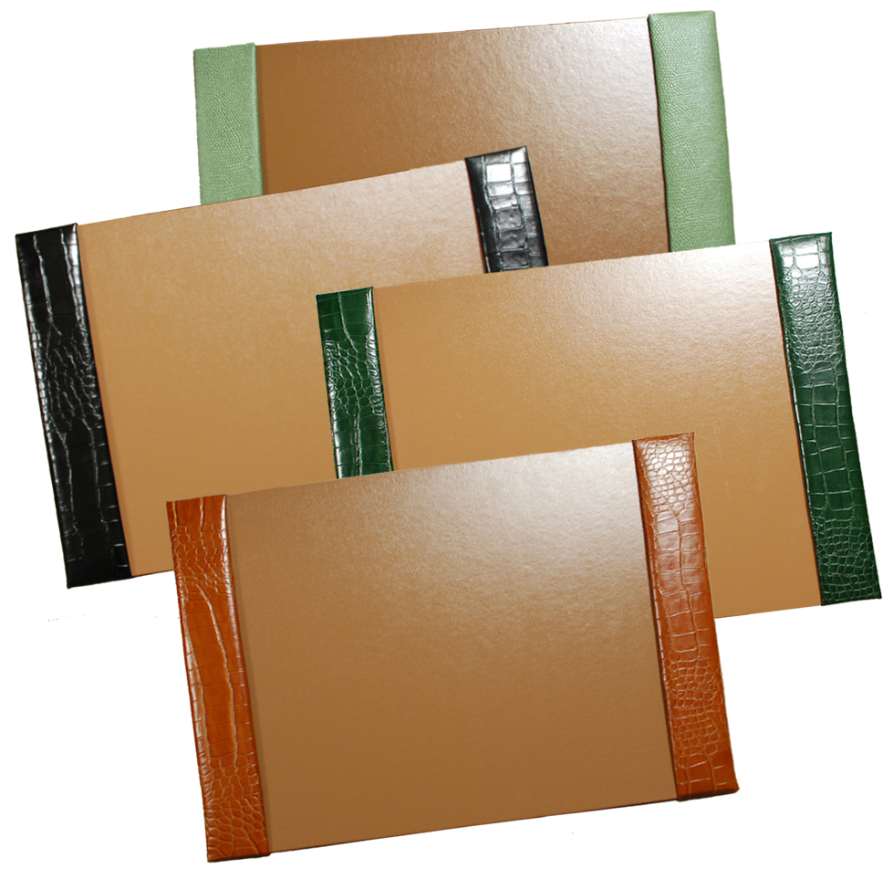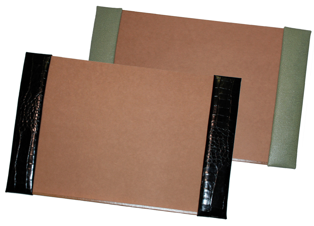 Looking for a complete desk set? Try one of our following matching leather desk sets. They are available in multiple colors, textures and sizes.