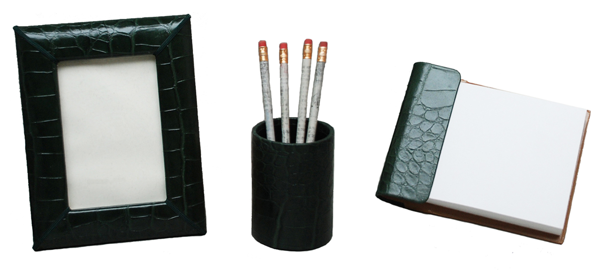 Please click below to order a Small 3-Piece Reptile-Texture Leather Desk Set:
